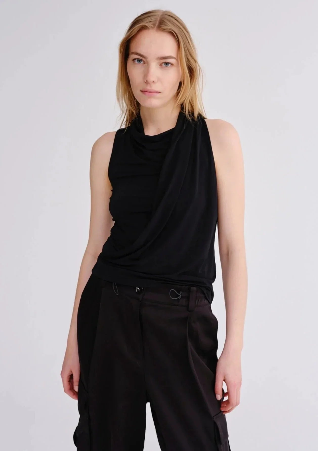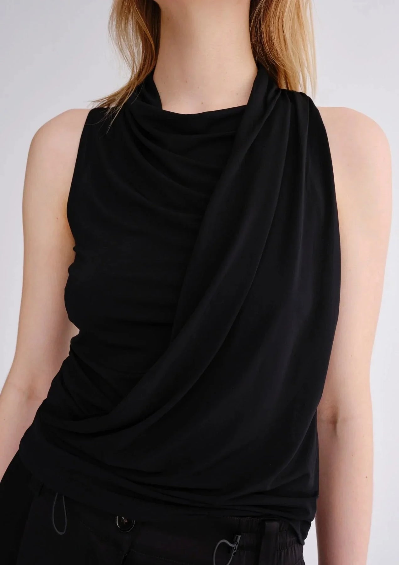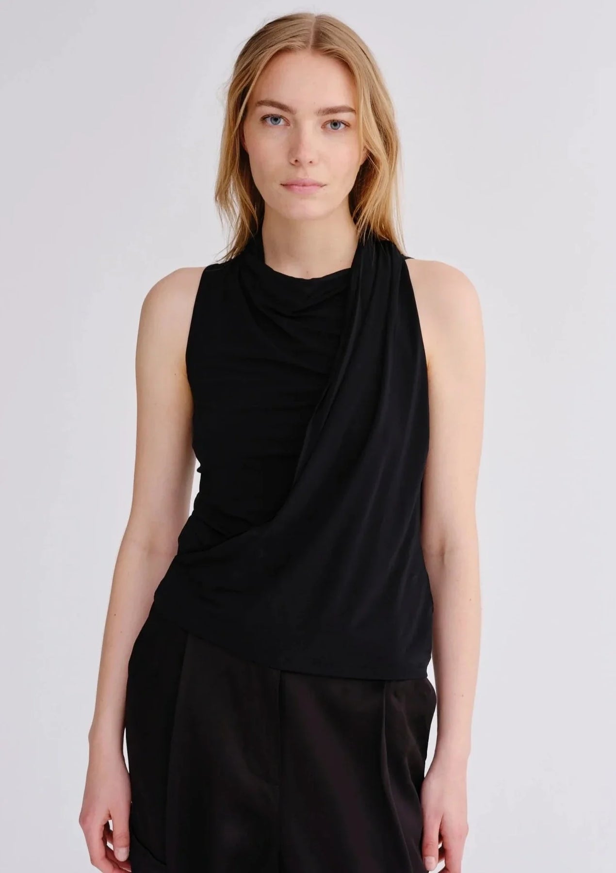 HERSKIND Coco Sleeveless Asymmetrical Draping Top - Black