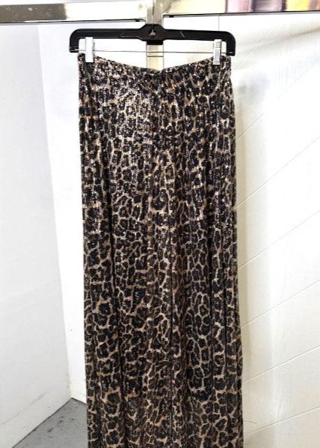 The Pink Door Leopard Sequins Wide Leg Pants