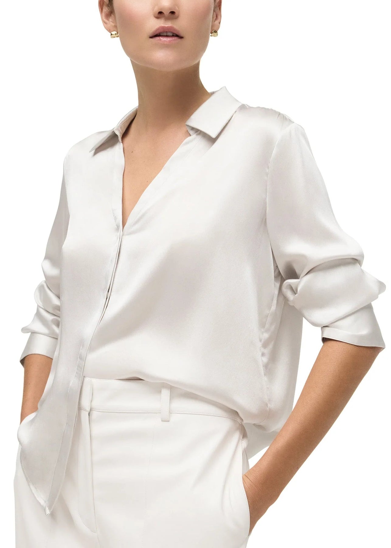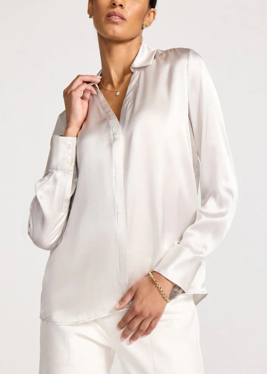 The Brochu Walker Eden Blouse Echo is crafted from 100% silk, offering a luxurious feel and timeless design. Its versatile styling makes it a perfect addition to any wardrobe.