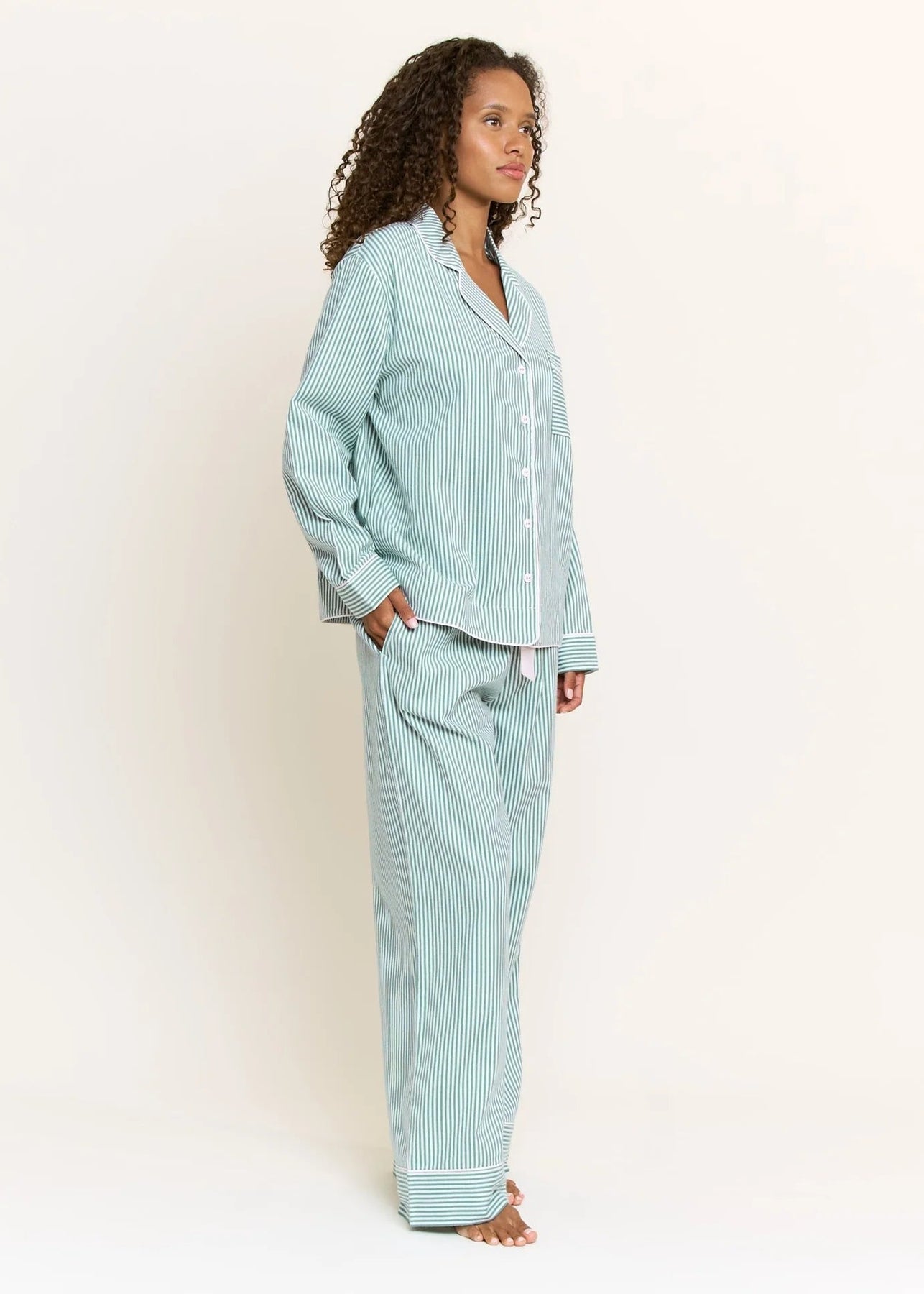 Honeydew Snooze Mode Long Pj Set Jade Mist Stripe