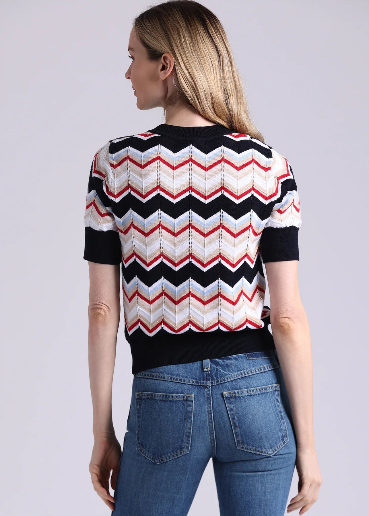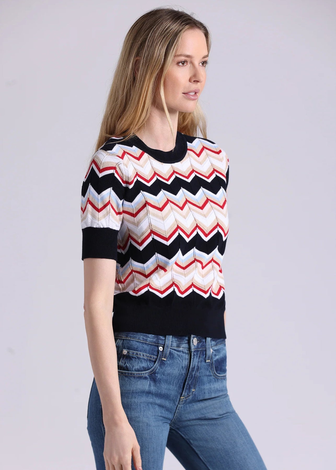 MINNIE ROSE Chevron Pointelle S/S Crew Multi Combo