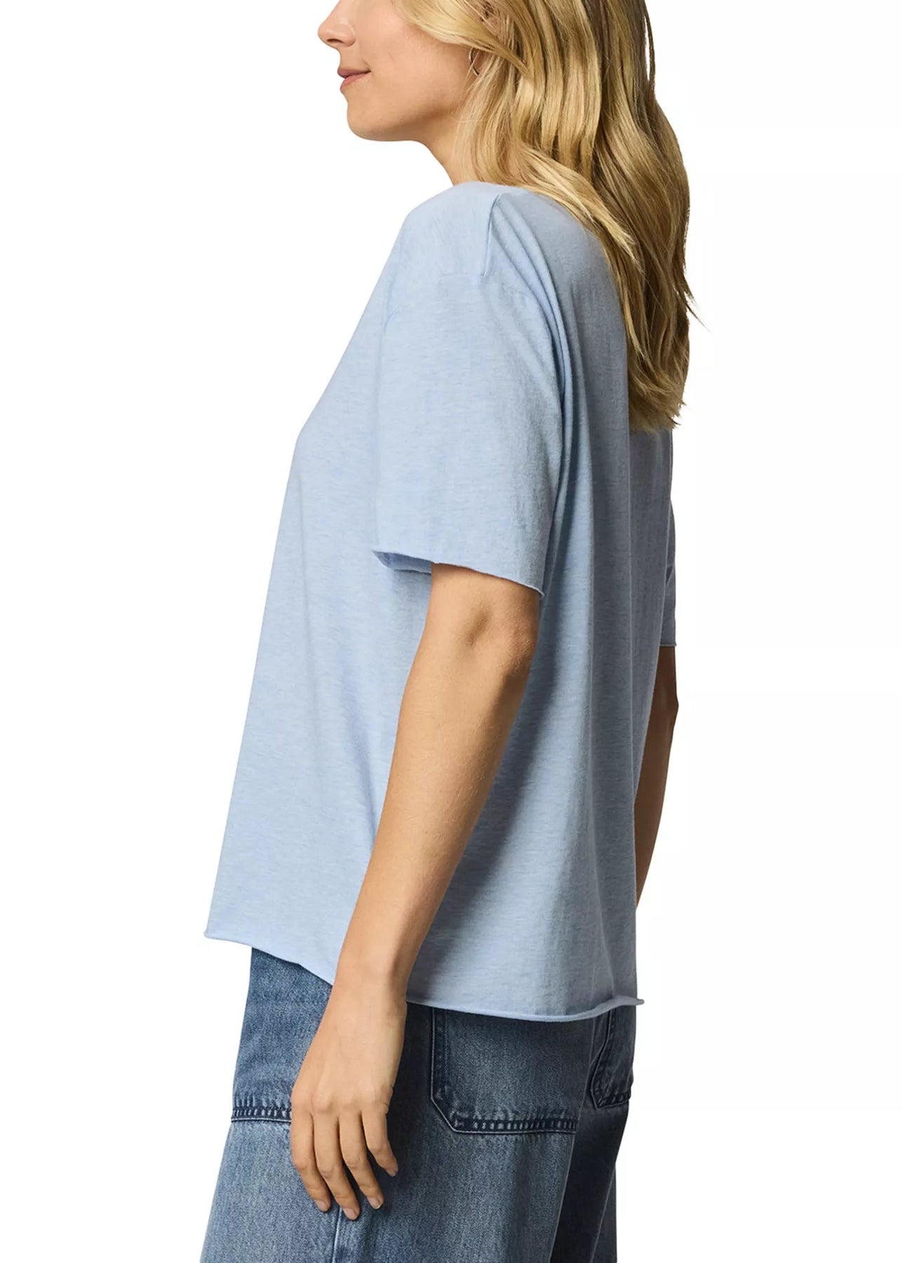 The Splendid Kacey V Neck Tee in Light Blue features a classic V-neckline, short sleeves, and a relaxed fit for everyday comfort and style. Perfect for casual wear or layering options.
