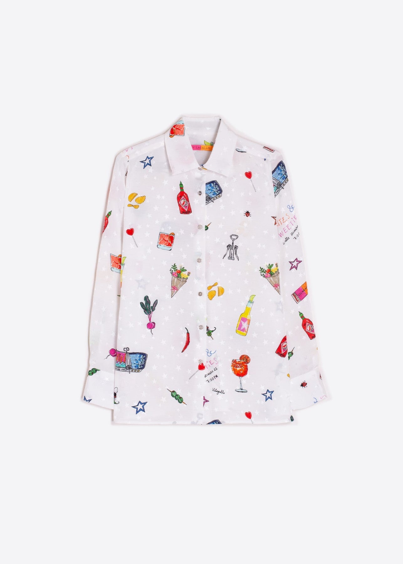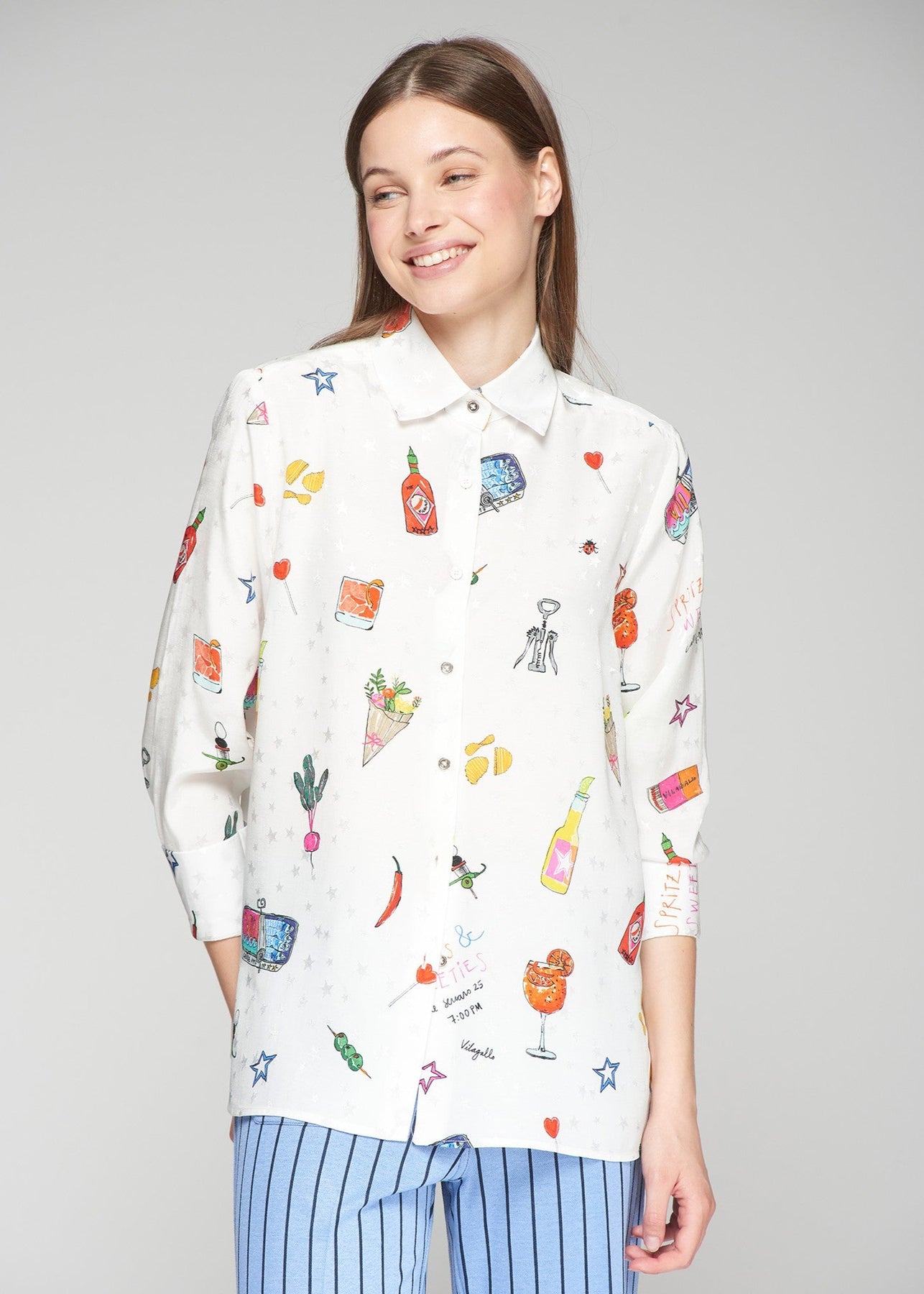 Elevate your style with the Vilagallo Mariela Cocktail Print Shirt. Featuring a colorful and vibrant print, this shirt is perfect for adding a lively touch to your wardrobe.