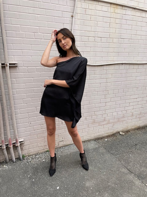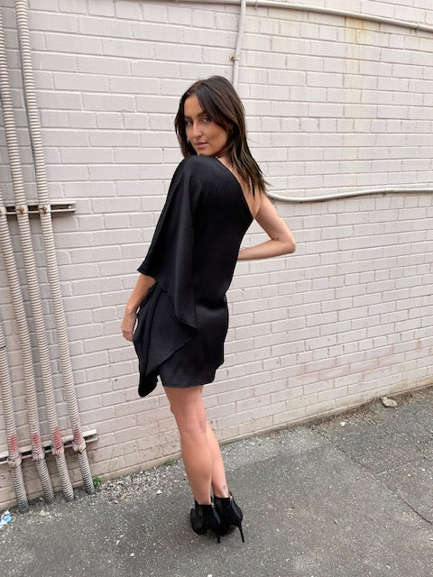 Tyche Short One Shoulder Dress Black