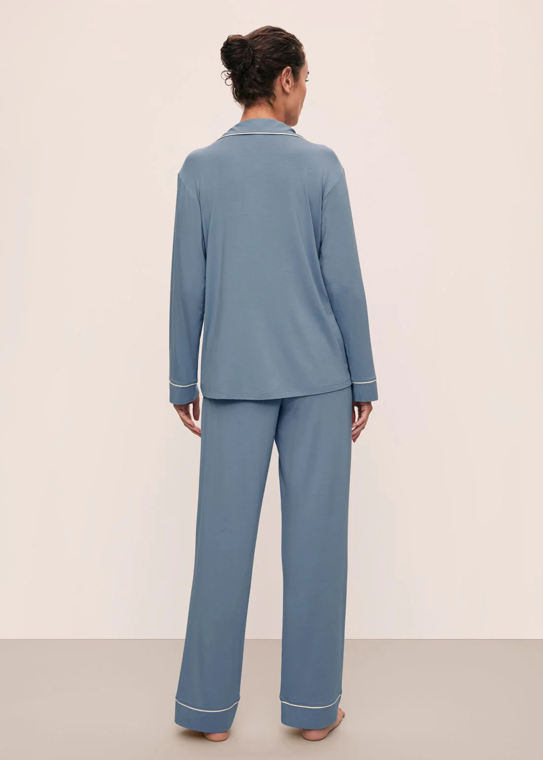 Eberjey Gisele Long PJ Set Faded Denim w/ Ivory Piping