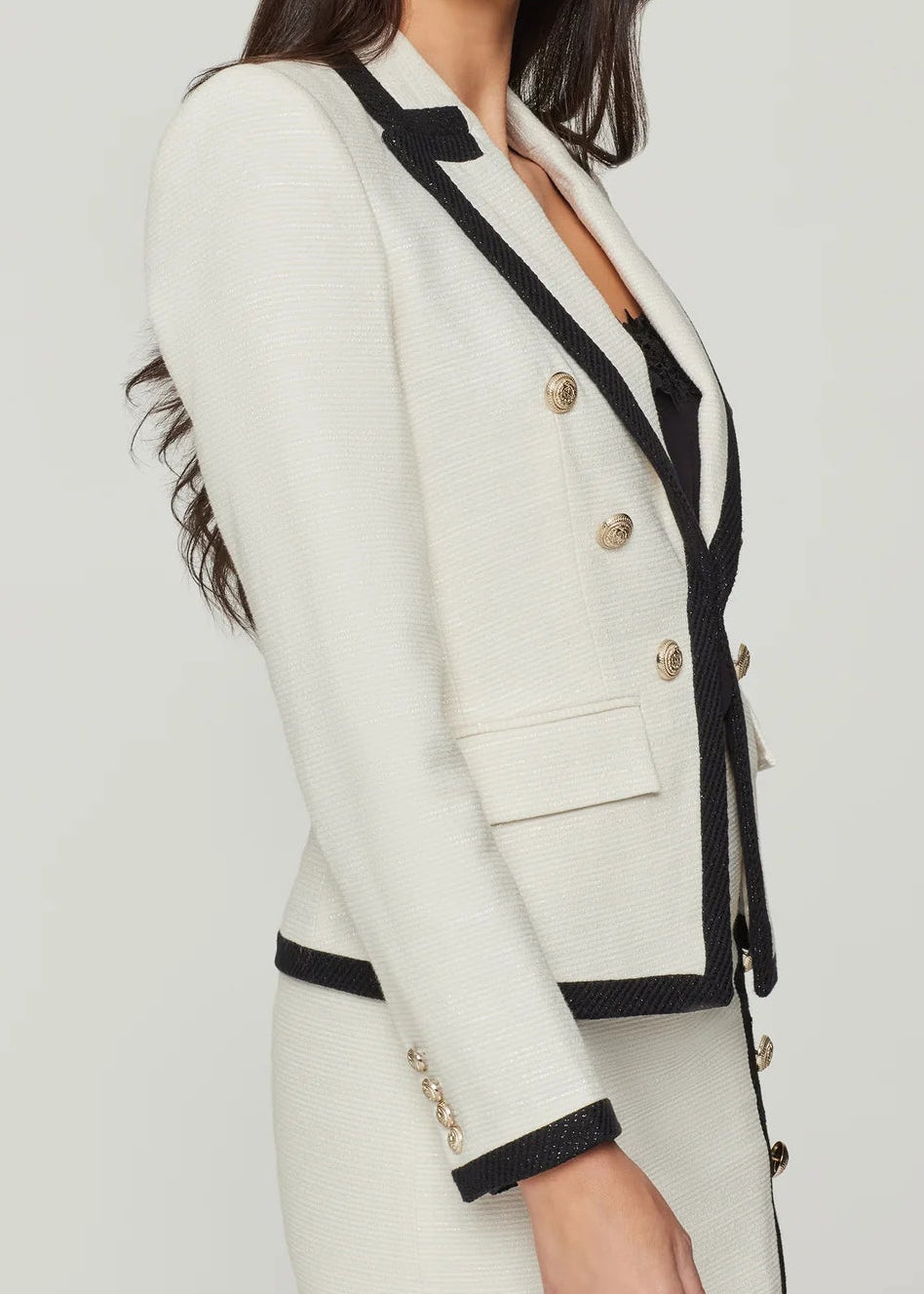 Generation Love Haidi Contrast Combo Tweed Blazer Cream/Black