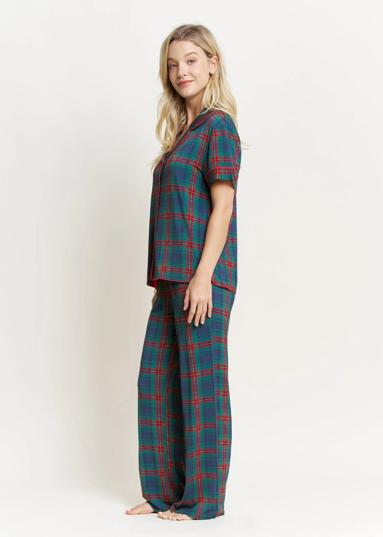 The Honeydew S/S Pj Set Dream Spell Plaid features a comfortable fabric, a stylish plaid design, and a relaxing fit, perfect for restful nights and lounging at home.