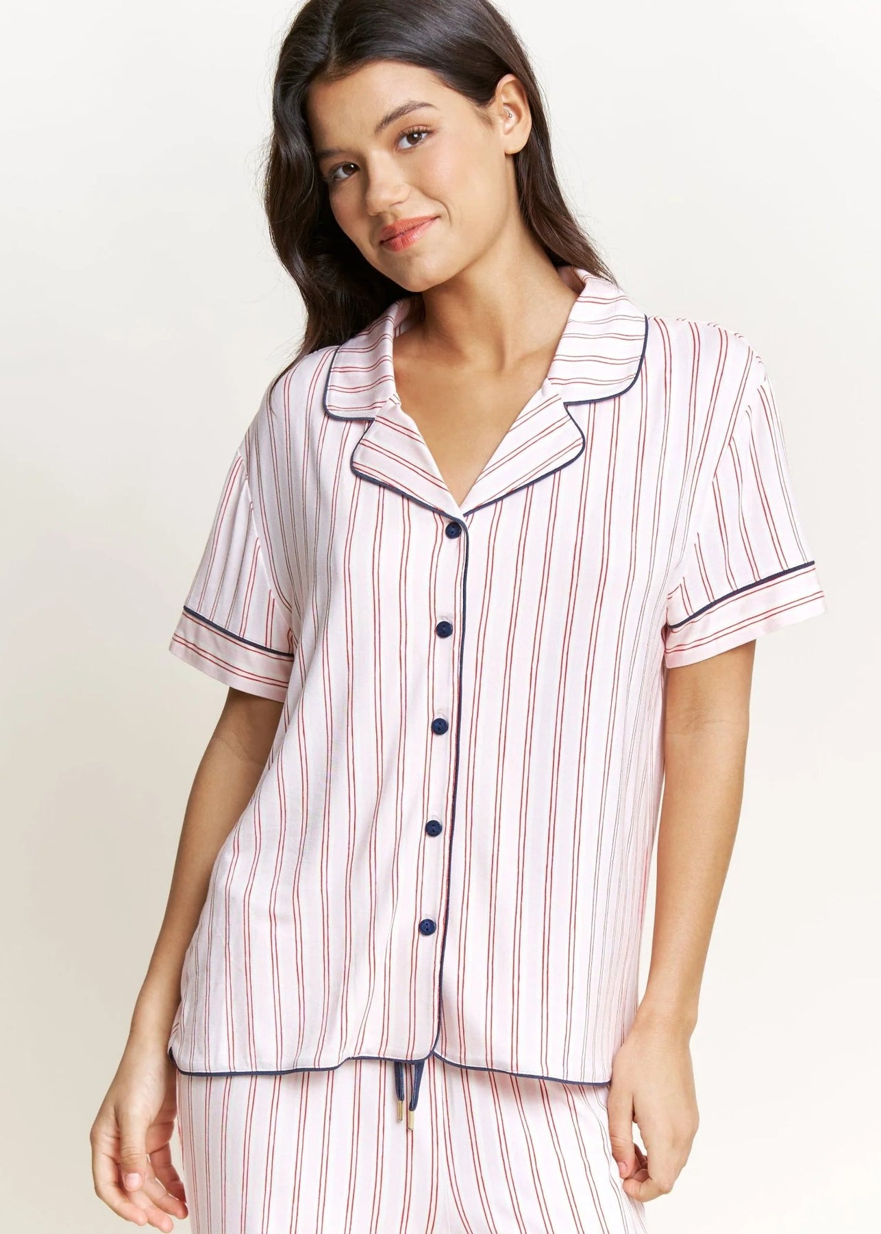 The Honeydew S/S PJ Set in Marzipan Stripe offers a combination of comfortable fabric and a stylish design, perfect for lounging at home. Its lightweight material ensures a relaxed fit for all-day ease.