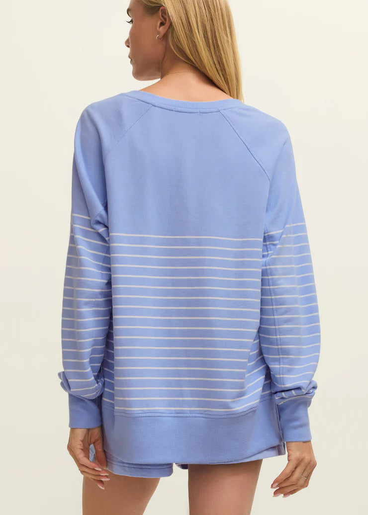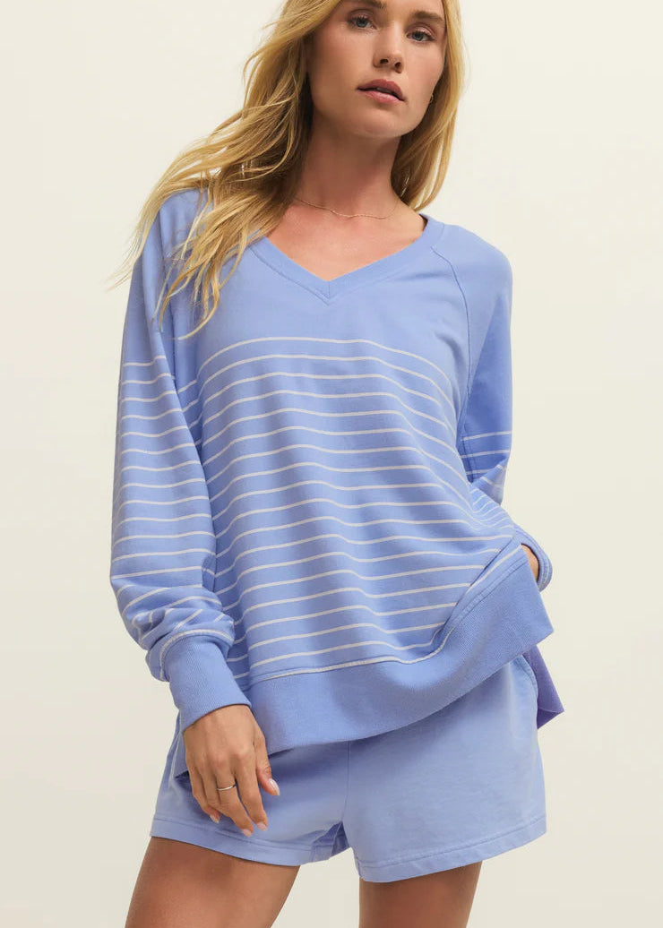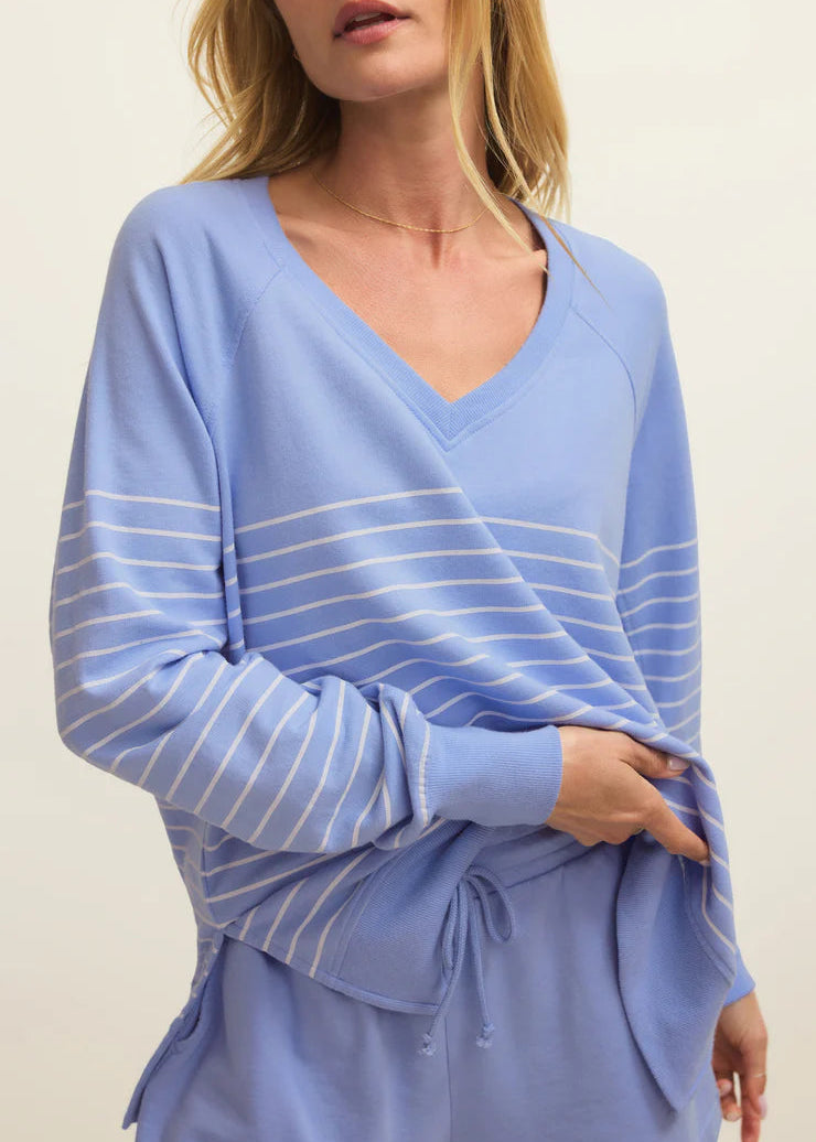 Z Supply Weekender Stripe V-Neck Barcelona Blue