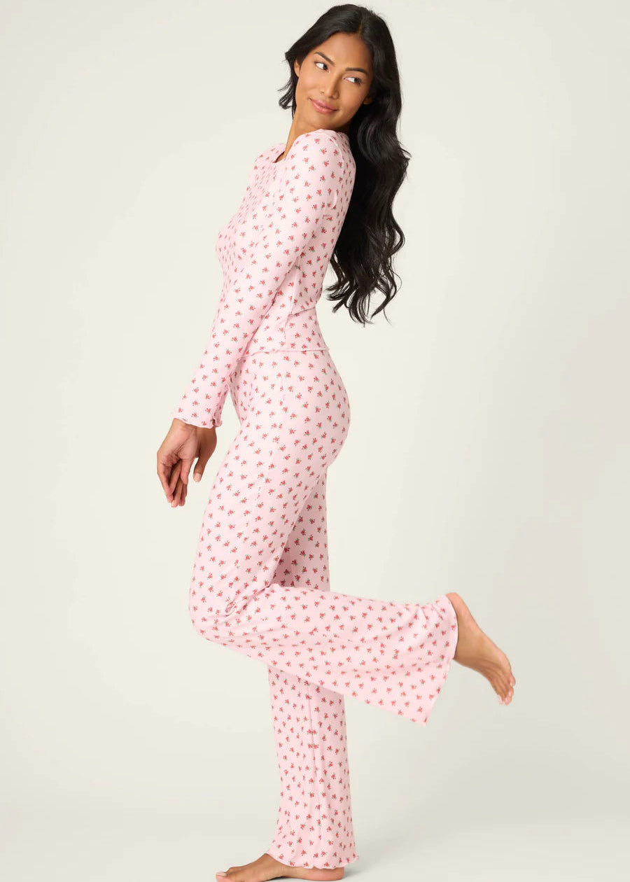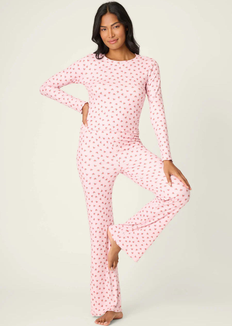 Pj Salvage Crazy For The Holidays Ditsy Floral Print Pants Set Pink