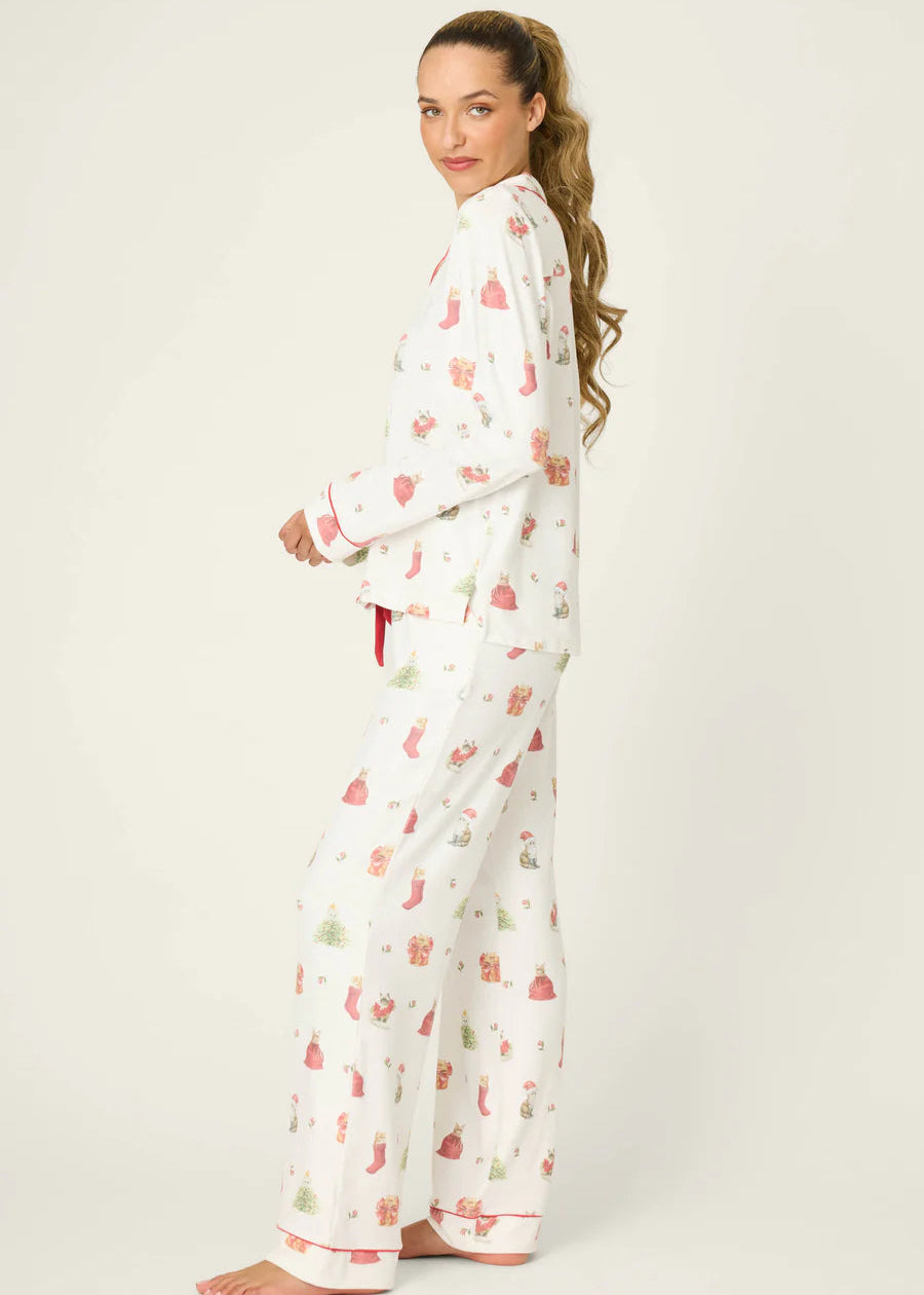 The P.J. Salvage Feline Festive Cat Print PJ Set features an adorable cat print and festive design, crafted from soft, comfortable material for a cozy night's sleep. Perfect for lounging or gifting this season.