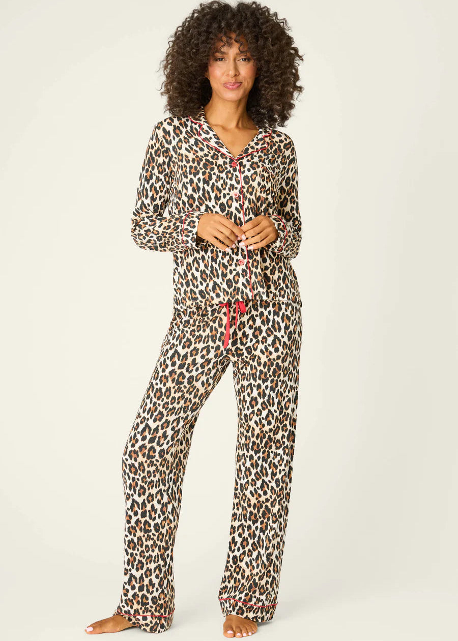 Pj Salvage Holiday Dreams Leopard Print Pants Set Natural