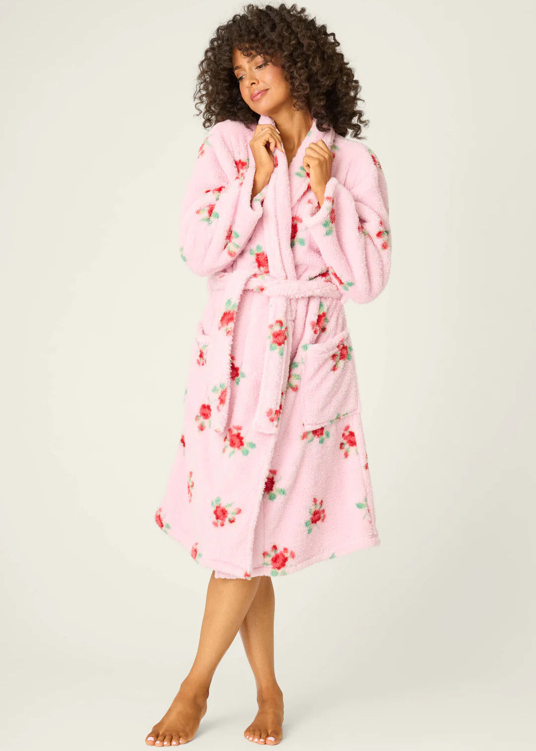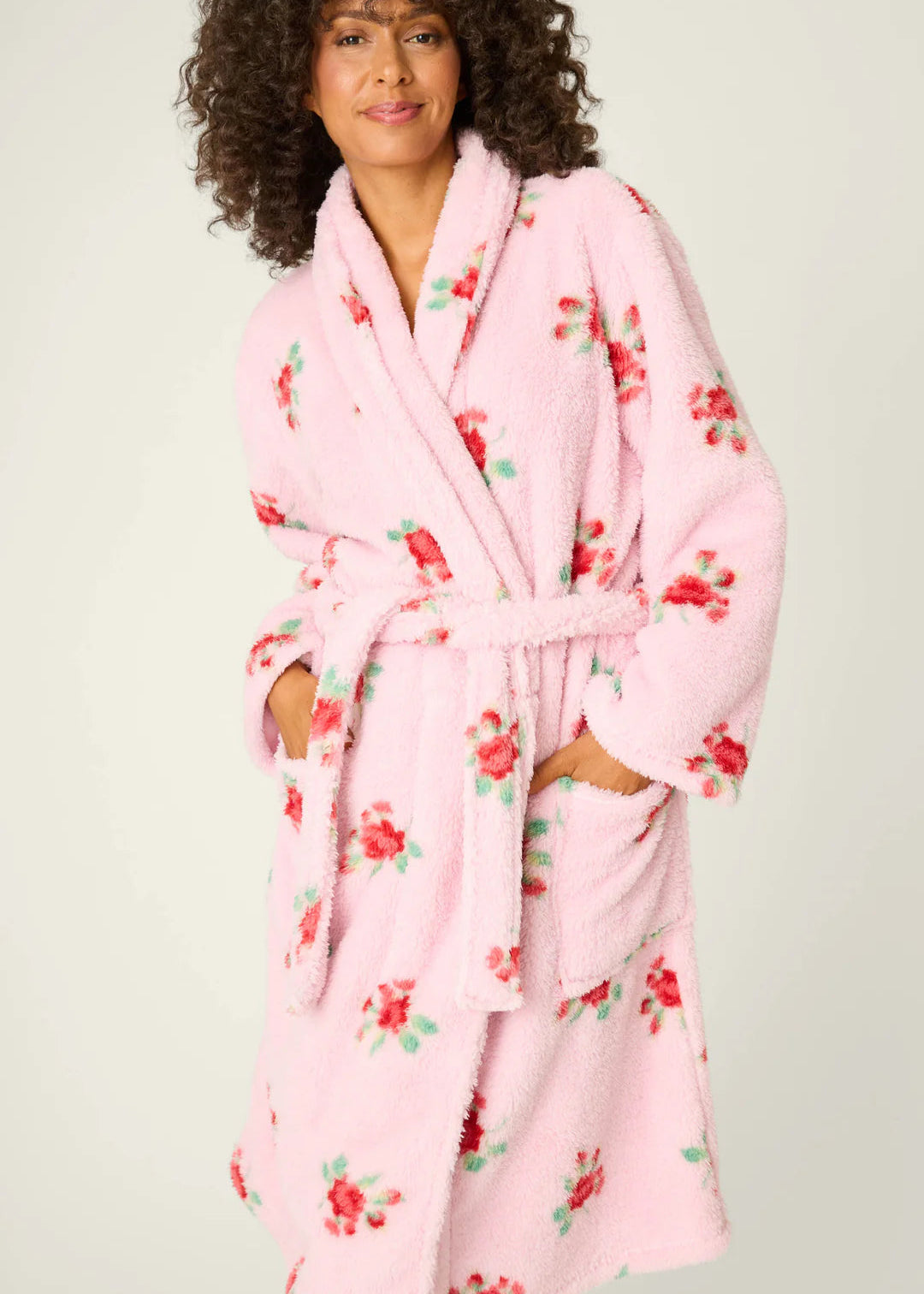 Pj Salvage Holiday Rose Print Plush Robe Pink