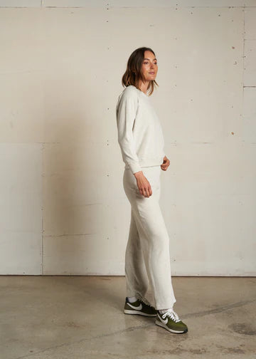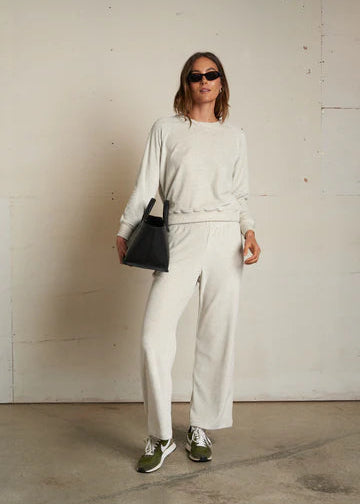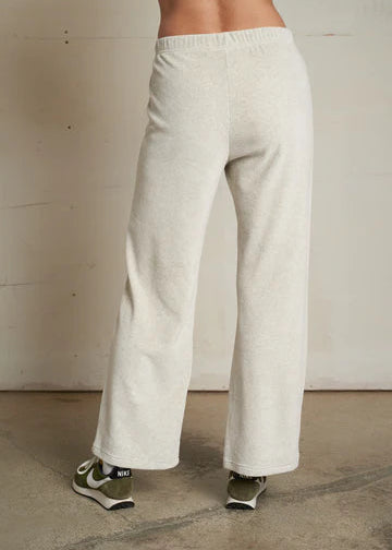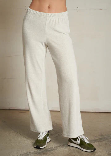 The PWT Velour Pant in Oatmeal from Perfect White Tee features a luxurious velour material and a comfortable fit, offering versatile style for any occasion. Ideal for casual wear or lounging in effortless elegance.
