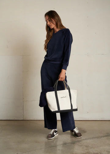Crafted from luxurious velour fabric, the PWT Velour Shrunken Raglan Sweatshirt in classic navy combines comfort with a stylish raglan design. Perfect for versatile, everyday wear.
