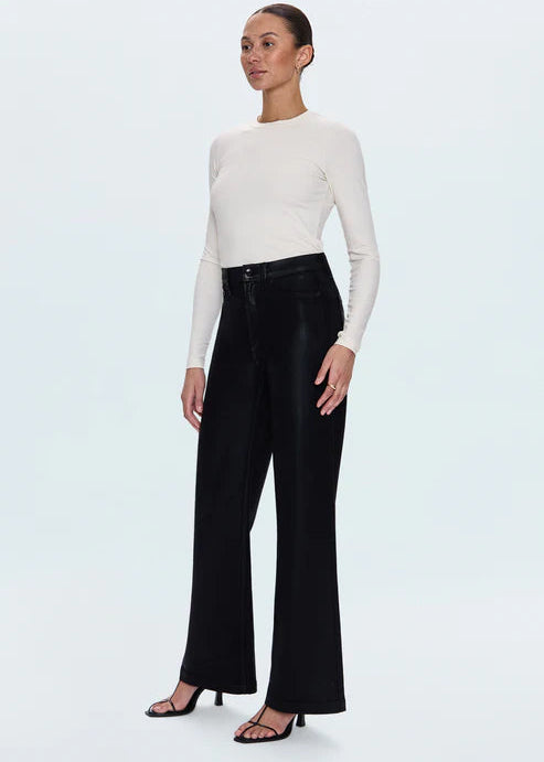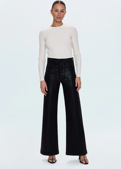 Pistola Lana High Rise Ultra Wide Leg Pants Coated Black