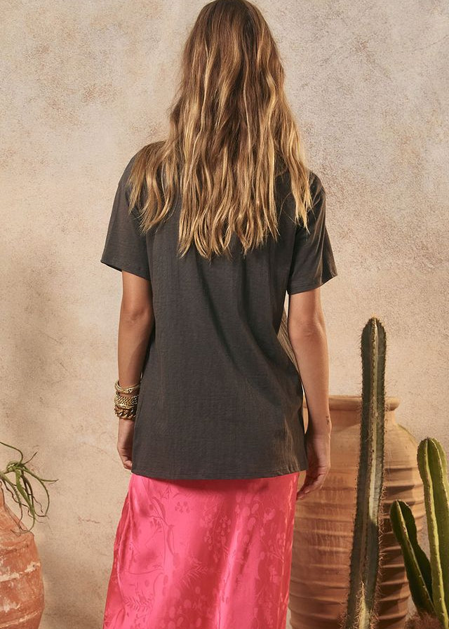 The Spell Coco Cantina Biker Tee in Charcoal features a unique design crafted from premium-quality materials. This versatile piece pairs effortlessly with a variety of styles, making it a staple for any wardrobe.