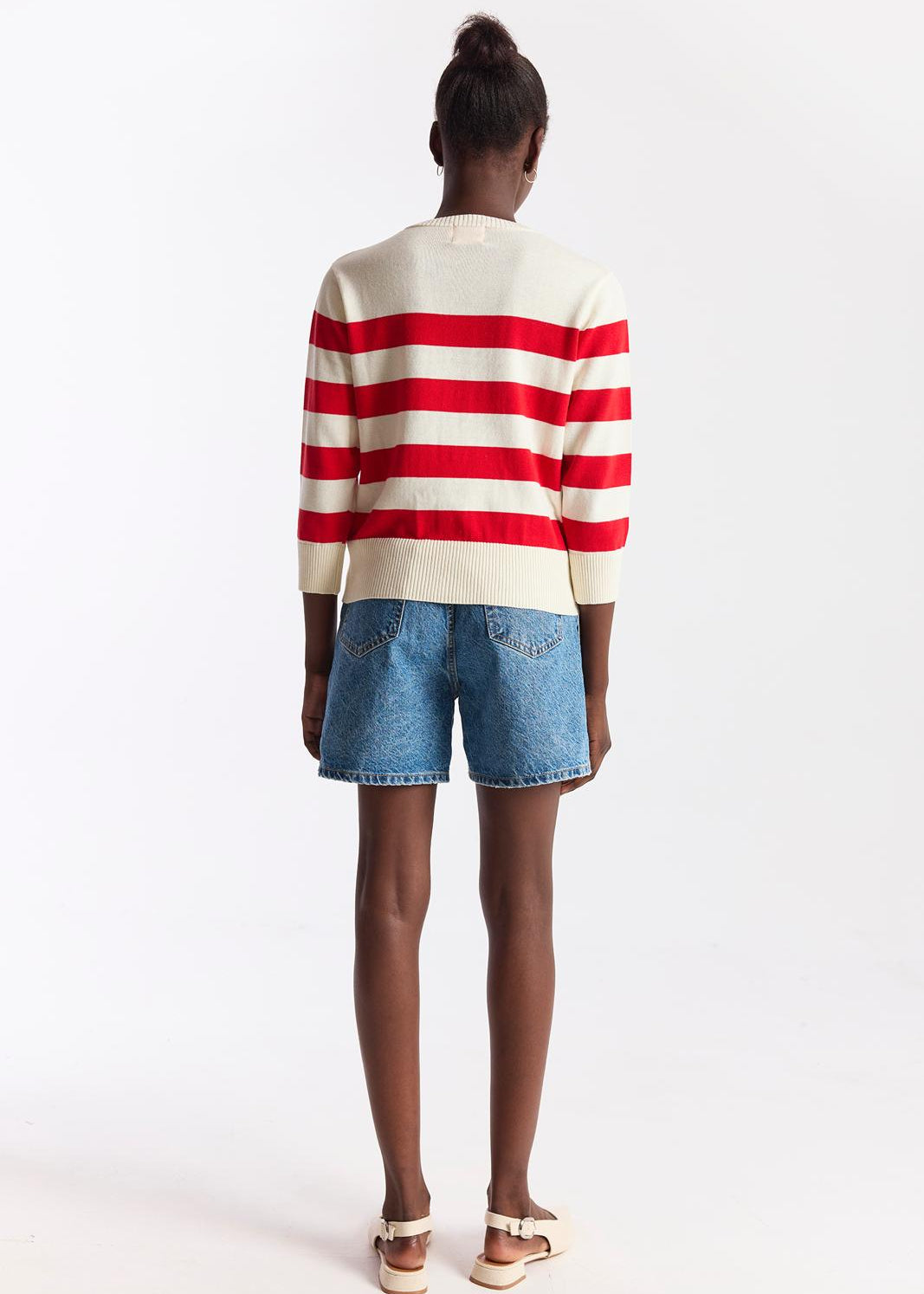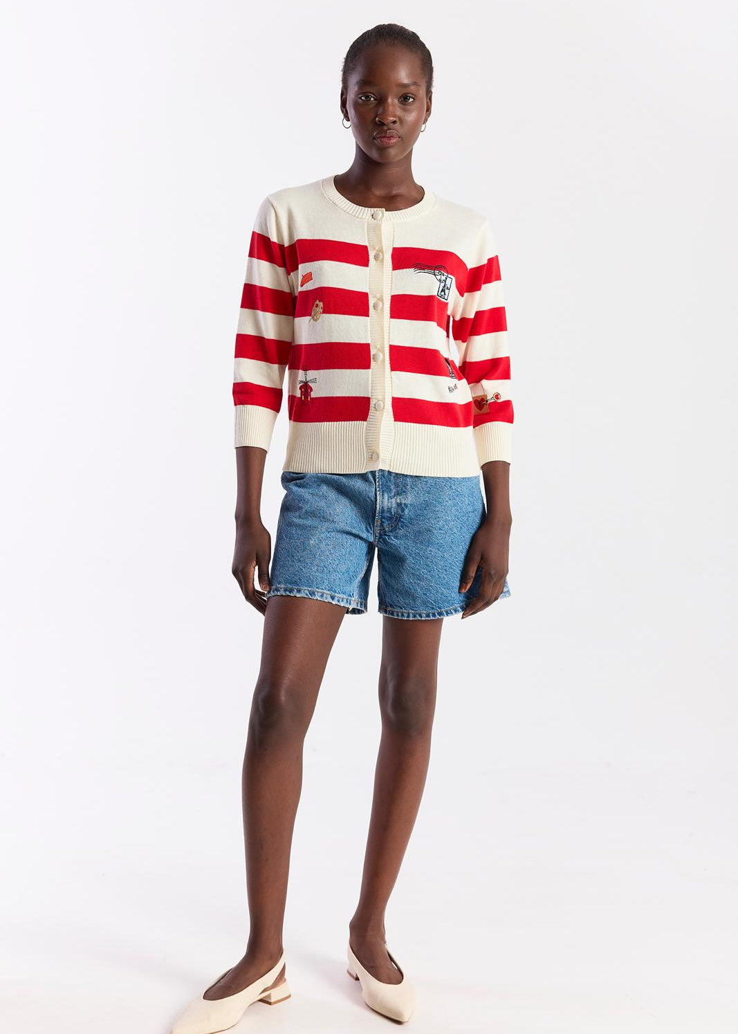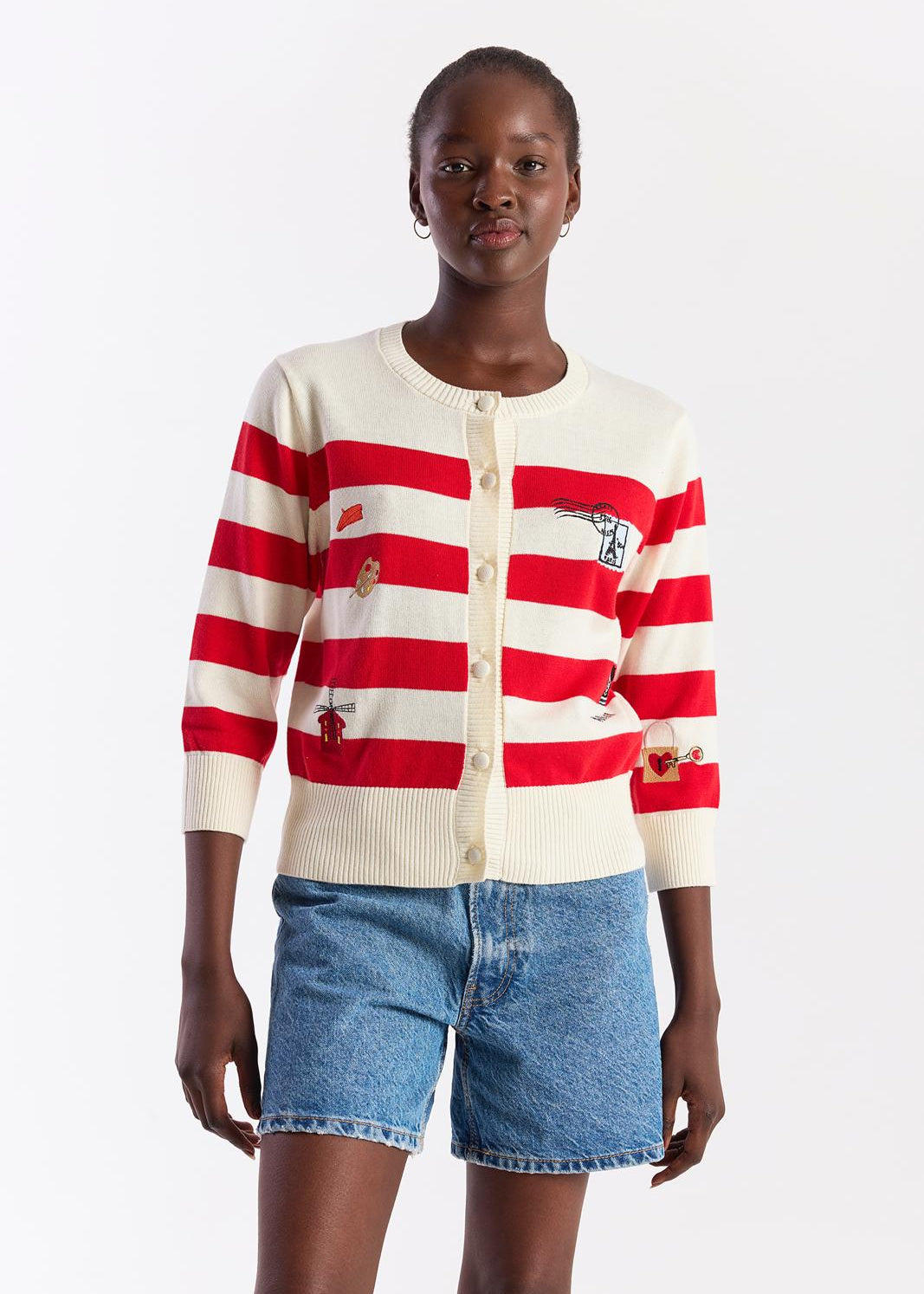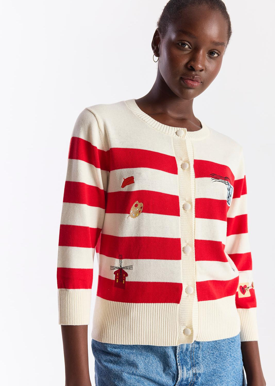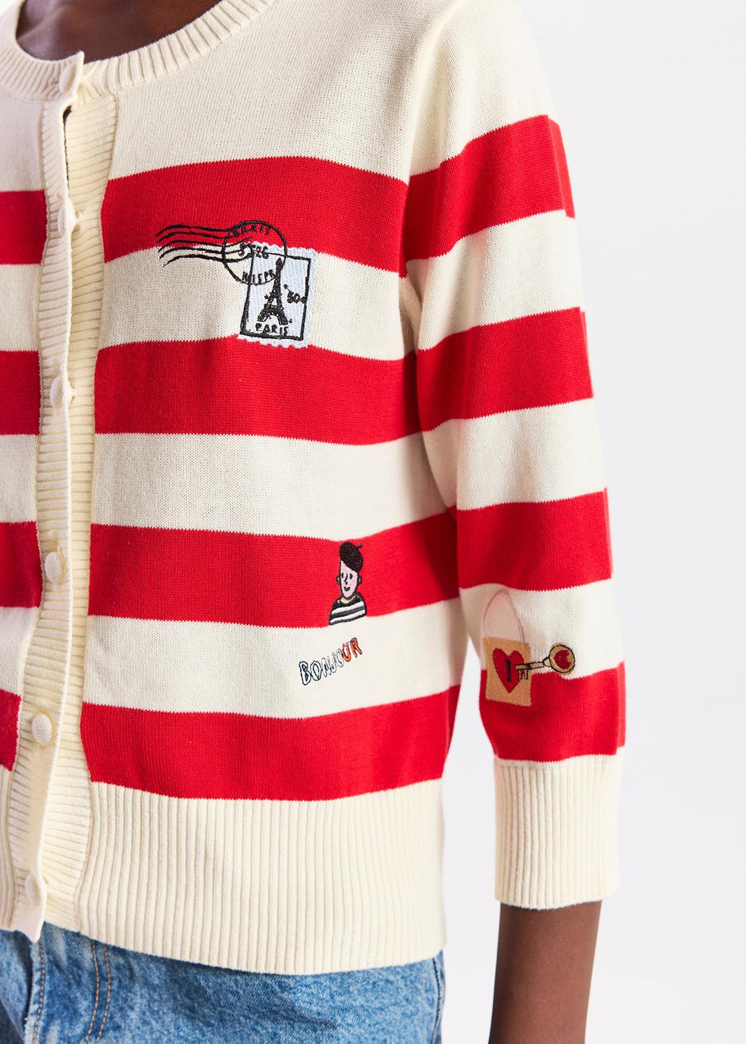 WISPR French Embroidery Stripe Cardigan Red Stripes