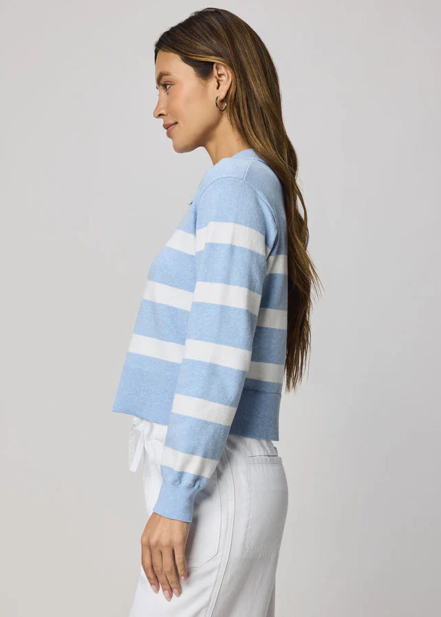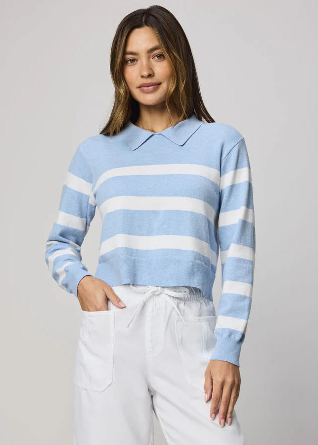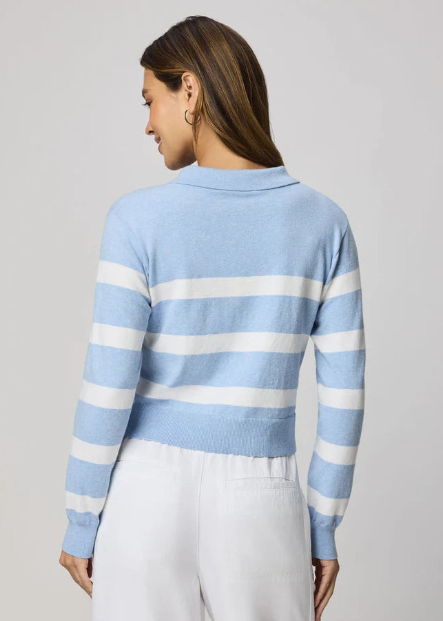 Splendid Phoebe Polo Stripe Sweater Sea Breeze Heather/White