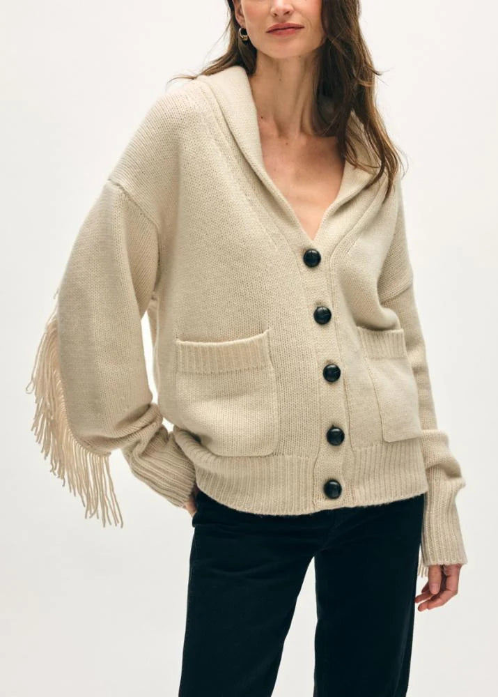 White + Warren Cashmere Blend Luxe Fringe Coatigan Ivory