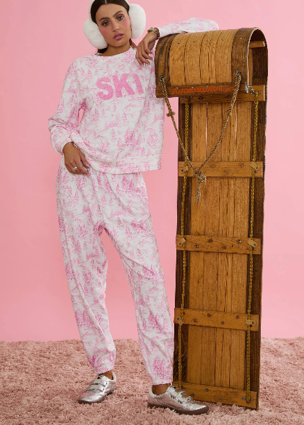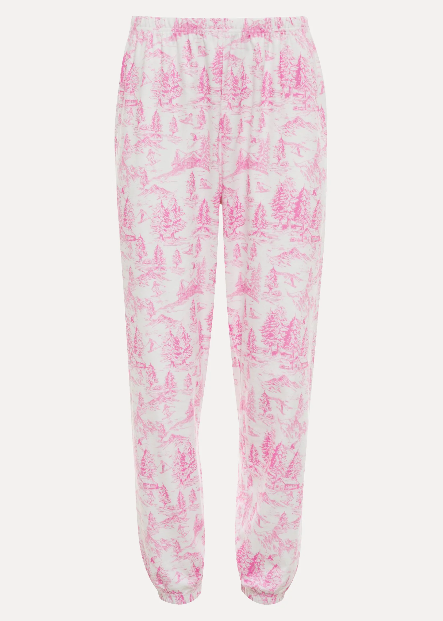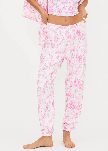 The Beach Riot Georgie Pants in Powder Pink Toile feature a trendy design with a comfortable fit, perfect for lounging or casual outings. Their versatile style pairs effortlessly with various wardrobe pieces.
