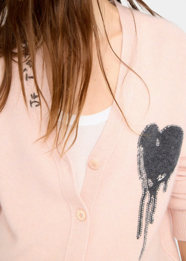 The Zadig & Voltaire Mirkaz Ws Flowing Hearts Pearly sweater features a luxurious design with a unique heart pattern, crafted from 100% premium cashmere for exceptional comfort and quality.