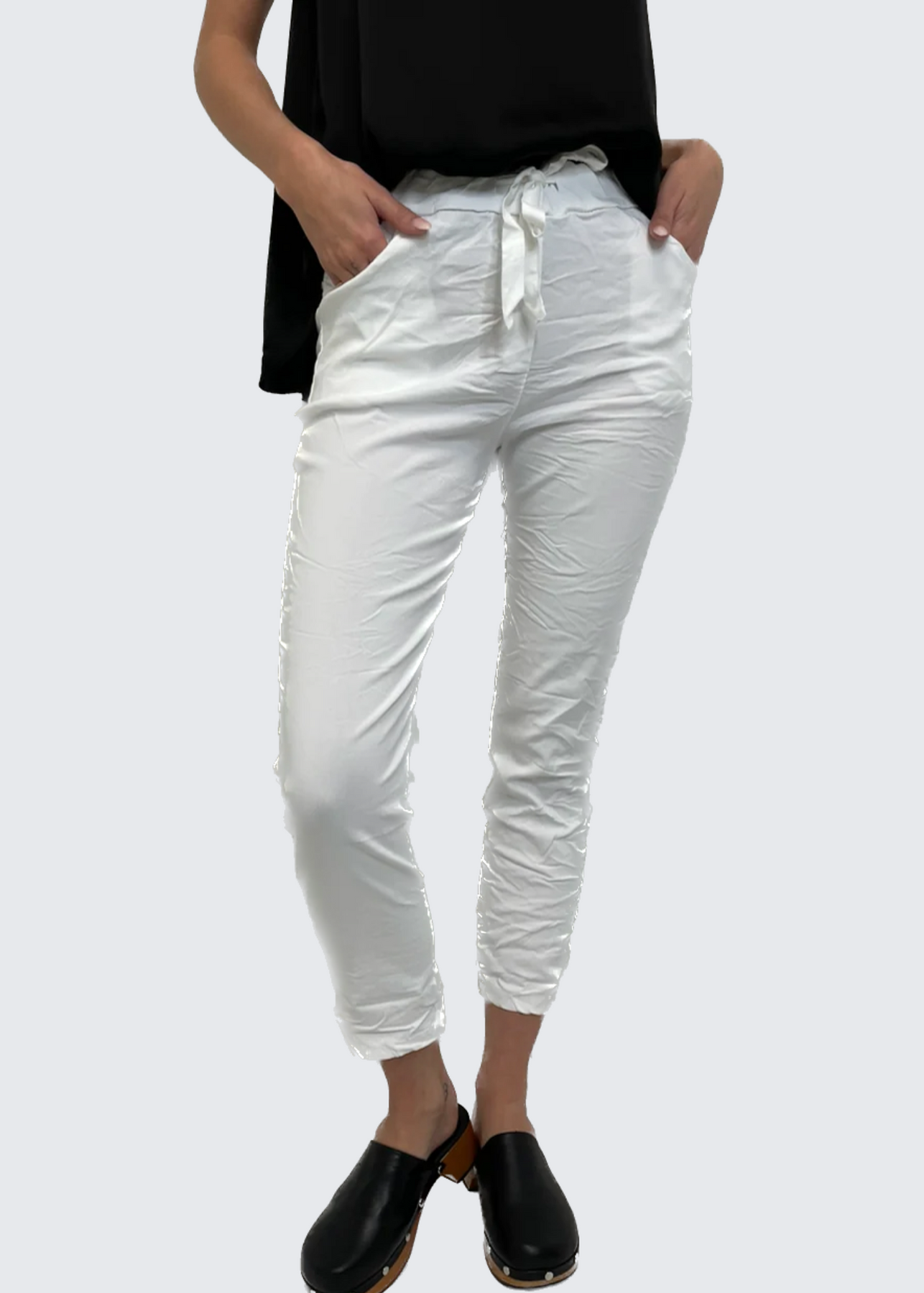 The Pink Door Plain Drawstring Joggers - White